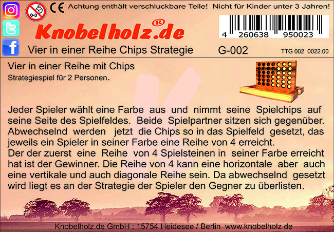Bei dem Strategiespiel Vier in einer Reihe versuchen 2 Spieler, 4 Spielsteine ihrer Farbe in eine Reihe zu bringen. Die Spielsteine werden abwechselnd gesetzt und wem als erster gelingt eine Reihe aus 4 Spielsteinen zu erzielen gewinnt ...